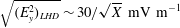 $\sqrt{(E_{y}^{2})_{LHD}}\sim 30/\sqrt{X}~\text{mV}~\text{m}^{-1}$