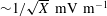 ${\sim}1/\sqrt{X}~\text{mV}~\text{m}^{-1}$