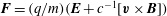 $\boldsymbol{F}=(q/m)(\boldsymbol{E}+c^{-1}[\boldsymbol{v}\times \boldsymbol{B}])$