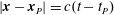 $|\boldsymbol{x}-\boldsymbol{x}_{P}|=c(t-t_{P})$