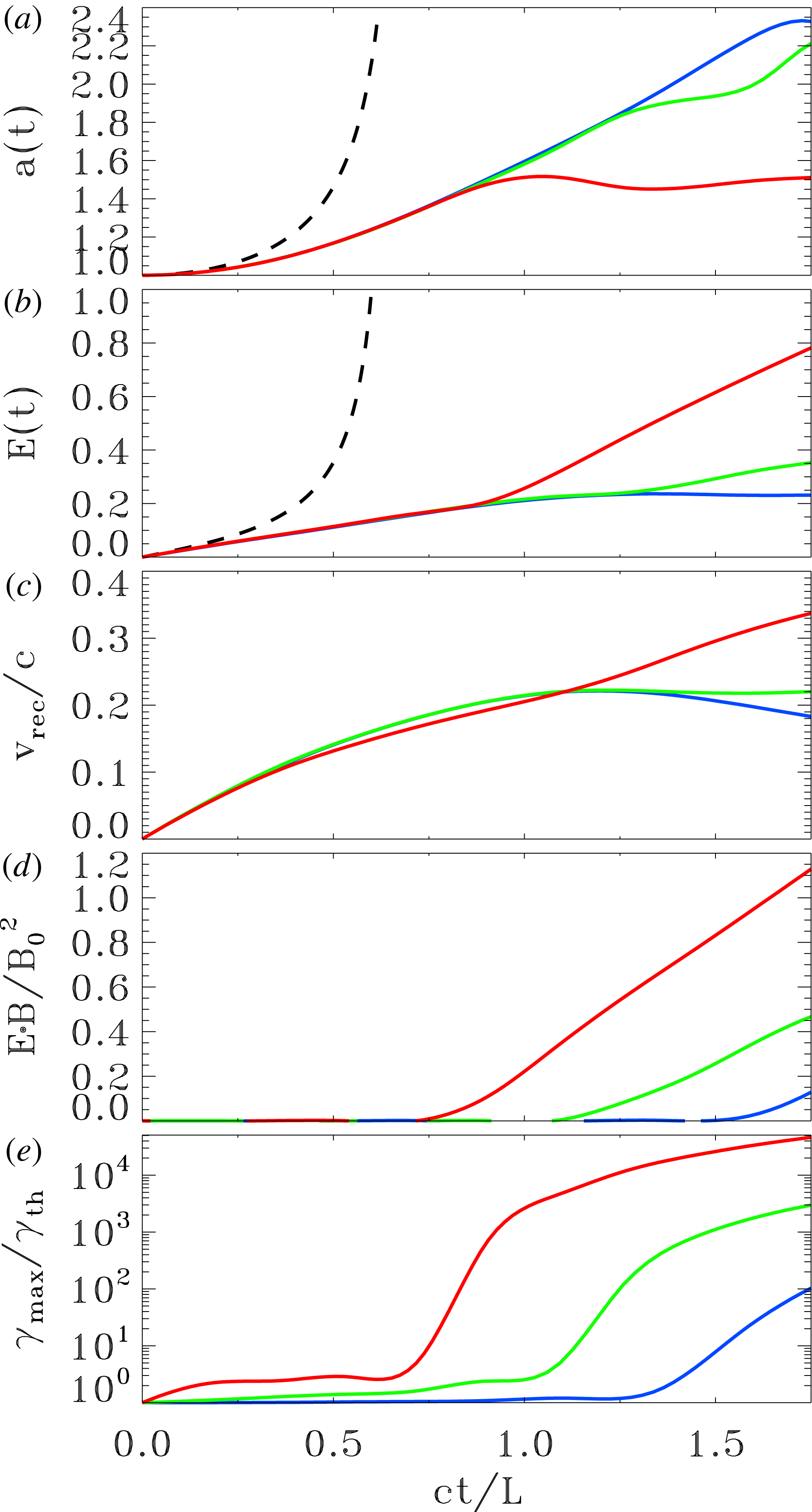 (Sironi & Spitkovsky Reference Sironi and Spitkovsky2014). The slower reconnection rate leads to a weaker accelerating electric field. Moreover, for a given flare duration it translates into a smaller utilized magnetic energy.