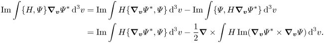 Here, the last equality follows from $\operatorname {Im} \int \{ \varPsi ,H\boldsymbol {\nabla }_{{\boldsymbol {v}}}\varPsi ^*\}\,\textrm {d}^3v=-\operatorname {div}\int H\operatorname {Im}(\boldsymbol {\nabla }_{{\boldsymbol {v}}}\varPsi \otimes \boldsymbol {\nabla }_{{\boldsymbol {v}}}\varPsi ^*)\,\textrm {d}^3v$