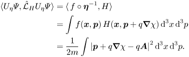 . However, KvH wavefunctions also carry a phase factor which we now turn to. If $\boldsymbol {\eta }({\boldsymbol {x}},{\boldsymbol {p}})=({\boldsymbol {x}},{\boldsymbol {p}}+q\boldsymbol {\nabla }\chi )$