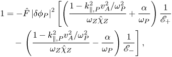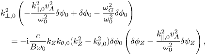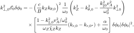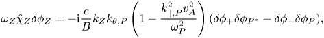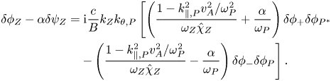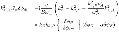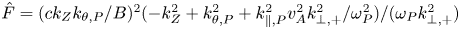 with $\hat {F}=(ck_{Z}k_{\theta ,P}/B)^{2}(-k_{Z}^{2}+k_{\theta ,P}^{2} +k_{\parallel ,P}^{2}v_{A}^{2}k_{\perp ,+}^{2}/\omega _{P}^{2})/(\omega _{P}k_{\perp ,+}^{2})$