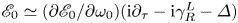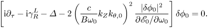 , and expanding $\mathscr {E}_{0}\simeq (\partial \mathscr {E}_{0}/\partial \omega _{0})(\textrm {i}\partial _{\tau }-\textrm {i}\gamma ^{L}_{R}-\varDelta )$