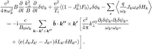 representing ion and electron, and $\delta L_{k}\equiv \delta \phi _{k}-k_{\parallel }v_{\parallel }\delta \psi _{k}/\omega _{k}$
