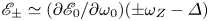 along the RSAE characteristics, as $\mathscr {E}_{\pm }\simeq (\partial \mathscr {E}_{0}/\partial \omega _{0})(\pm \omega _{Z}-\varDelta )$