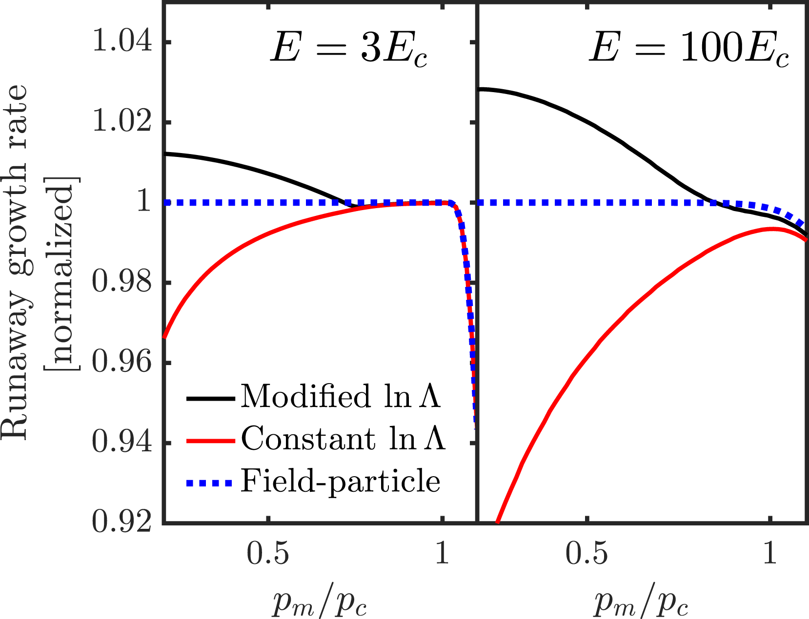 The rest of the paper is organized as follows. In § 2 we introduce the theoretical models describing the large-angle collisions. After giving an overview of the existing models, we present a derivation of the new conservative operator. In § 3 we investigate the effect of the new operator on the runaway growth rate numerically, using the kinetic equation solver CODE (Landreman, Stahl & Fülöp Reference Landreman, Stahl and Fülöp2014; Stahl et al. Reference Stahl, Embréus, Papp, Landreman and Fülöp2016). Finally, we summarize our conclusions in § 4.