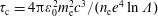 $\unicode[STIX]{x1D70F}_{\text{c}}=4\unicode[STIX]{x03C0}\unicode[STIX]{x1D700}_{0}^{2}m_{\text{e}}^{2}c^{3}/(n_{\text{e}}e^{4}\ln \unicode[STIX]{x1D6EC})$