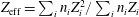 $Z_{\text{eff}}=\sum _{i}n_{i}Z_{i}^{2}/\sum _{i}n_{i}Z_{i}$