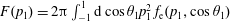 $F(p_{1})=2\unicode[STIX]{x03C0}\int _{-1}^{1}\text{d}\cos \unicode[STIX]{x1D703}_{1}p_{1}^{2}\,f_{\text{e}}(p_{1},\cos \unicode[STIX]{x1D703}_{1})$