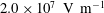 $2.0\times 10^{7}~\text{V}~\text{m}^{-1}$