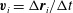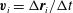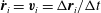 $\dot{\boldsymbol{r}}_{i}=\boldsymbol{v}_{i}={\rm\Delta}\boldsymbol{r}_{i}/{\rm\Delta}t$