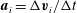 $\ddot{\boldsymbol{r}}_{i}=\boldsymbol{a}_{i}={\rm\Delta}\boldsymbol{v}_{i}/{\rm\Delta}t$