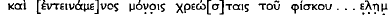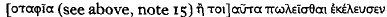 40 The last visible letter before the final lacuna in line 18 is not certain, but it is probably nu. Unfortunately, as is evident from the surrounding joins, the fit of the two fragments is not perfect at this point on the photograph; in true alignment the lower fragment would be further to the right. Mr. Benaki's rubbing shows what appears to be half a nu, with the left-hand stroke vertical, and this we regard as very probably correct, though mu is not wholly impossible (for mu with the upright stroke vertical see, e.g. line 17, init.). At the end of the lacuna the letter before the omicron, though only partially preserved, is apparently phi, since the rubbing shows the end of the wavy tails on the left and the distance between it and the previous letter is too wide for, e.g. a rho. Evidently the lapicide found that he had not room enough to make corresponding wavy lines on the right and so made an ordinary loop, αν………φος thus represents the condition of this part of the lines. If we understand the sense correctly the phrase should contain some notion of partnership or association, or else be the description of the individual in question, but we have not hit upon a suitable supplement. —φος at the end tempts one to think of τά]φος but we doubt this very much, since the subject here must be the antecedent of ὁ αὐτός in line 19. ἀν[τισύγγρα]φος would fit the lacuna very well, but the word would need to have a hitherto unattested meaning. The working translation which we have adopted above corresponds to ἑνὸ[ς τῶν λαβό]ντων τὰς τετρακισχε[ιλίας δράχμας—]μος (e.g. Πρῖ]μός) ἐστιν ὁ ἀν …… φος. Other supplements might be envisaged in line 7 (e.g. ἐνό[μισα, ἐν ὅ[σῳ, ἔνο[χος), but in any case the sense cannot be different.