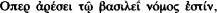 13 Dig. 1.4.1.Pr.–1: ‘Quod principi placuit, legis habet vigorem: utpote cum lege regia, quae de imperio eius lata est, populus ei et in eum omne suum imperium et potestatem conferat. (1) Quodcumque igitur imperator per epistulam et subscriptionem statuit vel cognoscens decrevit vel de piano interlocutus est vel edicto praecepit, legem esse constat. Haec sunt quas vulgo constitutiones appellamus’.
