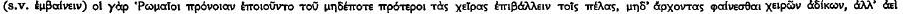 39 That Polybius is indeed generalizing about the Romans here is a point worth insisting upon, for he has been taken, on the basis of a passage in Book 31, as indicating that such behaviour was a new departure for the Romans in the 160's (see Walbank, , Polybius, 170Google Scholar and cf. Entretiens Hardt xx, 12). The passage is 31. 10. 7: ![]()