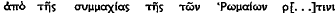 36 The argument here does not require that chs. 13–14 (overlapping excerpts from the Exc. de legationibus gentium and the Exc. de legationibus Romanorum) and ch. 18 (from the Exc. de sententiis) be put directly together in the text of Polybius; the relation between them is clear enough without having to do that. What is essential is that this relation between the section on Philip's actions at Maroneia (with the Roman intervention) and that on the αἰτίαι of the third Macedonian war be recognized and appreciated. The sequence is guaranteed by 22. 1. 5 (from the ‘table of contents’ to the book given in the excerpts de legationibus gentium): ![]()