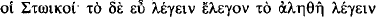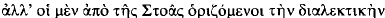 59 Anon, proleg. in Hermog. status, Rh. Gr. vol. VII. I, p. 8.20 Walz: SVF II.293 cites the first half of this definition but not the crucial identification of speaking well with speaking the truth. M. Pohlenz, Die Stoa (1949), ii, 31 puts this right. For the first half of the definition, see also Quint., inst. 2.15.34 = SVF II.292; Sextus, adv. math. II.6 = SVF II.294. For both parts, cf. Mnesarchus at Cic., de orat. 1.83. It is perhaps indicative of the scant difference between Stoic rhetoric and Stoic dialectic that Alexander, in top. p. 1.8–14 Wallie should open his survey of definitions of the latter category as follows: .