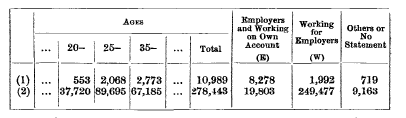 (3) gives the age-distribution of 8,120 “Employers” and “Working on Own Account.”