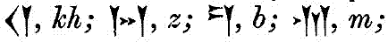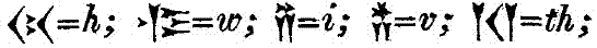 as dh and t'h. The only characters of which I objected to the values assigned by the Professor, were the following; ![]()