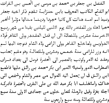 In his notice of the philosopher Abū Bishr, of Dair Ḳunnā, Ibn al-Ḳiftī mentions that he had a public discussion with the grammarian Abū Sa‘īd al-Ḥasan al-Sīrāfī, famous for his commentaries on Sībawaihi's grammar. This discussion is reported at length by Yāḳūt in his invaluable Mu‘jam al-udabā, on the authority of Abū Ḥayyān, from whose works Yāḳūt derives much that is interesting, though he accuses Abū Ḥayyān of habitually romancing. Abū Ḥayyān, whose full name was ‘Alī Ibn Muḥammad al-Tauḥīdī, was an eminent writer of the fourth century of Islam, of whose works only three (to the best of my knowledge) have as yet been published: his treatises on Friendship and the Sciences, printed at the Jawā‘ib press in 1301 a.h.—without the very important treatise on the lives of the two viziers Ibn al-‘Amīd and Ibn ‘Abbād, which had been promised in advertisements, but which is said to be a book that brings ill-luck; and a work lithographed in India called Muḳābasāt. A brief account of him is given by Ibn Khillikān in his life of Ibn al-‘Amīd (translated by De Slane, iii, 264) ; a lengthier one by Ṣafadī, which Mr. Amedroz has kindly copied for me, and which is given in a note; and a very lengthy one by Yāḳūt, in the fifth volume of his dictionary. An extract from one of his works, which occurs in al-Ḳiftī's dictionary, is translated into German by Dieterici (“ Philosophie der Araber,” i, 144).