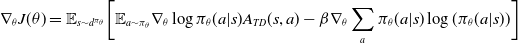 denoting the probability of taking action a in state s, with the distribution being parametrized by