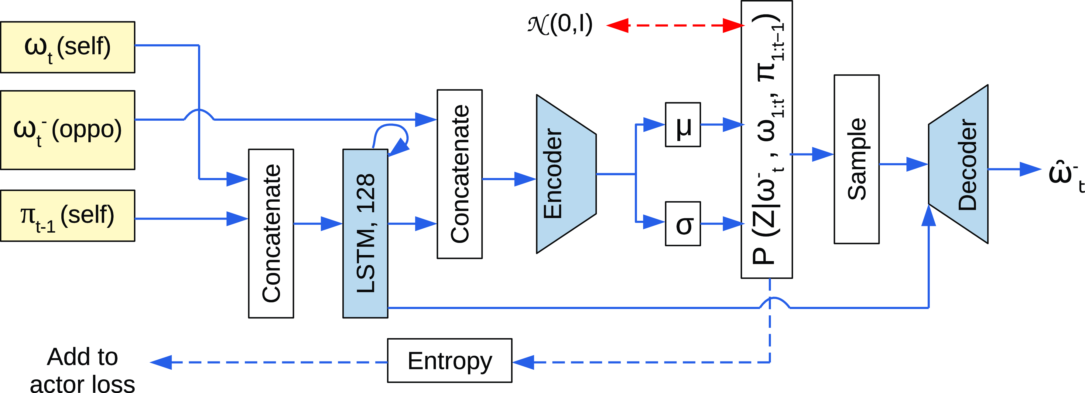 that includes system state as well as opponent’s observations and actions) in addition to its observation (