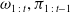 $\omega_{1\,:\,t},\pi_{1\,:\,t-1}$