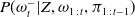 $P(Z|\omega^-_t,\omega_{1\,:\,t},\pi_{1\,:\,t-1})$