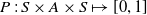 $P\,:\,S\times A\times S\mapsto [0,1]$