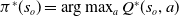 $\pi^\ast(s_o)=\arg\max_aQ^\ast(s_o,a)$