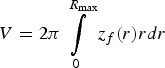 $V = 2{\rm \pi} \vint\limits_0^{R_{\max }} z_f \lpar r\rpar rdr$ were obtained. The critical surface is not planar, it can be qualitatively approximated by a spherical cap. Fast electrons are characterized by a sufficiently wide range of motion vectors with respect to the optical axis, this divergence further grows due to their reflection from the plasma border. Thereby the surface of the crater produced by fast electrons has a quasi-spherical shape. The surface of the crater created by the shock wave should also be spherical, because the size of the area of the laser energy absorption is small in comparison with the crater dimension and thus the shock wave turns out to be almost spherical.
