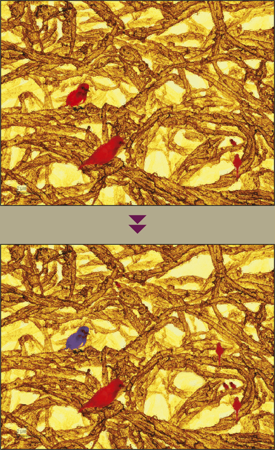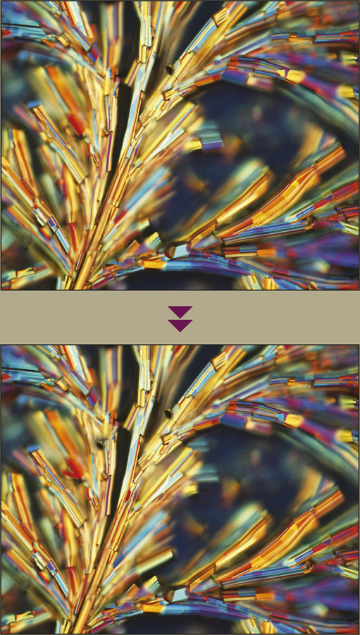 Sb2Se3 is a promising solar-cell material with an interesting nanoribbon crystal structure. By slowing its growth rate, the material forms a series of branched structures. This image was recorded with a simple optical microscope and used no image processing or coloring.