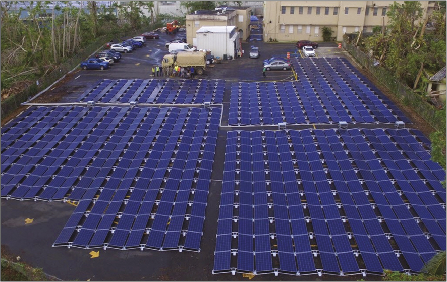 Tesla’s solar power system generates electricity for Hospital del Niño in San Juan that serves about 3000 children across the island of Puerto Rico. Before the system installation, the hospital was forced to run off generators and ration diesel fuel. Photo credit: Tesla, Inc.