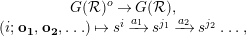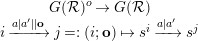 $$\begin{eqnarray}\begin{array}{@{}c@{}}G({\mathcal{R}})^{o}\rightarrow G({\mathcal{R}})\\ i\xrightarrow[{}]{a|a^{\prime }||\mathbf{o}}j=:(i;\mathbf{o})\mapsto s^{i}\xrightarrow[{}]{a|a^{\prime }}s^{j}\end{array}\end{eqnarray}$$