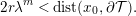 $$\begin{eqnarray}2r\unicode[STIX]{x1D706}^{m}<\text{dist}(x_{0},\unicode[STIX]{x2202}{\mathcal{T}}).\end{eqnarray}$$