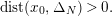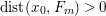 By this inequality, the assumption that $x_{0}\notin \unicode[STIX]{x2202}{\mathcal{T}}$ ensures the existence of $m\geqslant 1$ such that $\text{dist}(x_{0},F_{m})>0$ . Let $N\geqslant 1$ be the least integer such that $x_{0}\notin F_{N}$ .