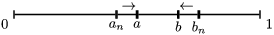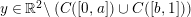 Figure 1. Proposition 4.5. In the above two cases, $C([a,b])$ is shown solid and $C([0,a])\cup C([b,1])$ is shown dashed. The intersection point is $C(a)=C(b)$.