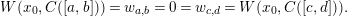 Figure 2. Theorem 3. $C([a,c])$ is shown dotted and $C([d,b])$ is shown dashed. The intersection points correspond to $C(a)=C(b)$ and $C(c)=C(d)$.