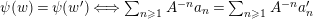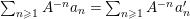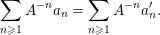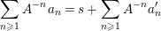 $$\begin{eqnarray}\mathop{\sum }_{n\geqslant 1}A^{-n}a_{n}=s+\mathop{\sum }_{n\geqslant 1}A^{-n}a_{n}^{\prime }\end{eqnarray}$$