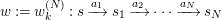 Now, let $w:=w_{k}^{(N)}:s\xrightarrow[{}]{a_{1}}s_{1}\xrightarrow[{}]{a_{2}}\cdots \xrightarrow[{}]{a_{N}}s_{N}$ be a walk of length $N$ in $G({\mathcal{R}})$ for some $1\leqslant k\leqslant m_{N}$ , as defined in Remark 2.5. The associated segment