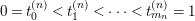 in this order. In general, let $w_{1}^{(n)},\ldots ,w_{m_{n}}^{(n)}$ be the walks of length $n$ in the automaton $G({\mathcal{R}})^{o}$ , written in the lexicographical order, from $(1;\underbrace{\mathbf{1},\ldots ,\mathbf{1}}_{n\,\text{times}})$ to $(p;\underbrace{\mathbf{o}_{\mathbf{m}},\ldots ,\mathbf{o}_{\mathbf{m}}}_{n\,\text{times}})$ . Let us denote by $(i;\mathbf{o}_{\mathbf{1}},\ldots ,\mathbf{o}_{\mathbf{n}})\& \overline{\mathbf{1}}$ the concatenated walk $(i;\mathbf{o}_{\mathbf{1}},\ldots ,\mathbf{o}_{\mathbf{n}},\overline{\mathbf{1}})$ . Then, $\unicode[STIX]{x1D6E5}_{n}$ is obtained by joining by straight line segments the points
