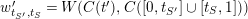 • $t^{\prime }:=t_{C_{5}}$ ( $C_{5}=(0,-1/3)$ ) to compute $w_{t_{S^{\prime }},t_{S}}^{\prime }=W(C(t^{\prime }),C([0,t_{S^{\prime }}]\cup [t_{S},1]))$ .