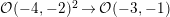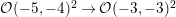 ${\mathcal{O}}(-5,-4)^{2}\rightarrow {\mathcal{O}}(-3,-3)^{2}$