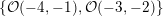 $\{{\mathcal{O}}(-4,-1),{\mathcal{O}}(-3,-2)\}$