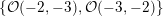 $\{{\mathcal{O}}(-2,-3),{\mathcal{O}}(-3,-2)\}$