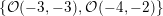 $\{{\mathcal{O}}(-3,-3),{\mathcal{O}}(-4,-2)\}$