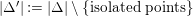 $|\unicode[STIX]{x1D6E5}^{\prime }|:=|\unicode[STIX]{x1D6E5}|\setminus \{\text{isolated points}\}$