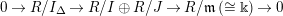 $0\rightarrow R/I_{\unicode[STIX]{x1D6E5}}\rightarrow R/I\oplus R/J\rightarrow R/\mathfrak{m}\,(\cong \Bbbk )\rightarrow 0$